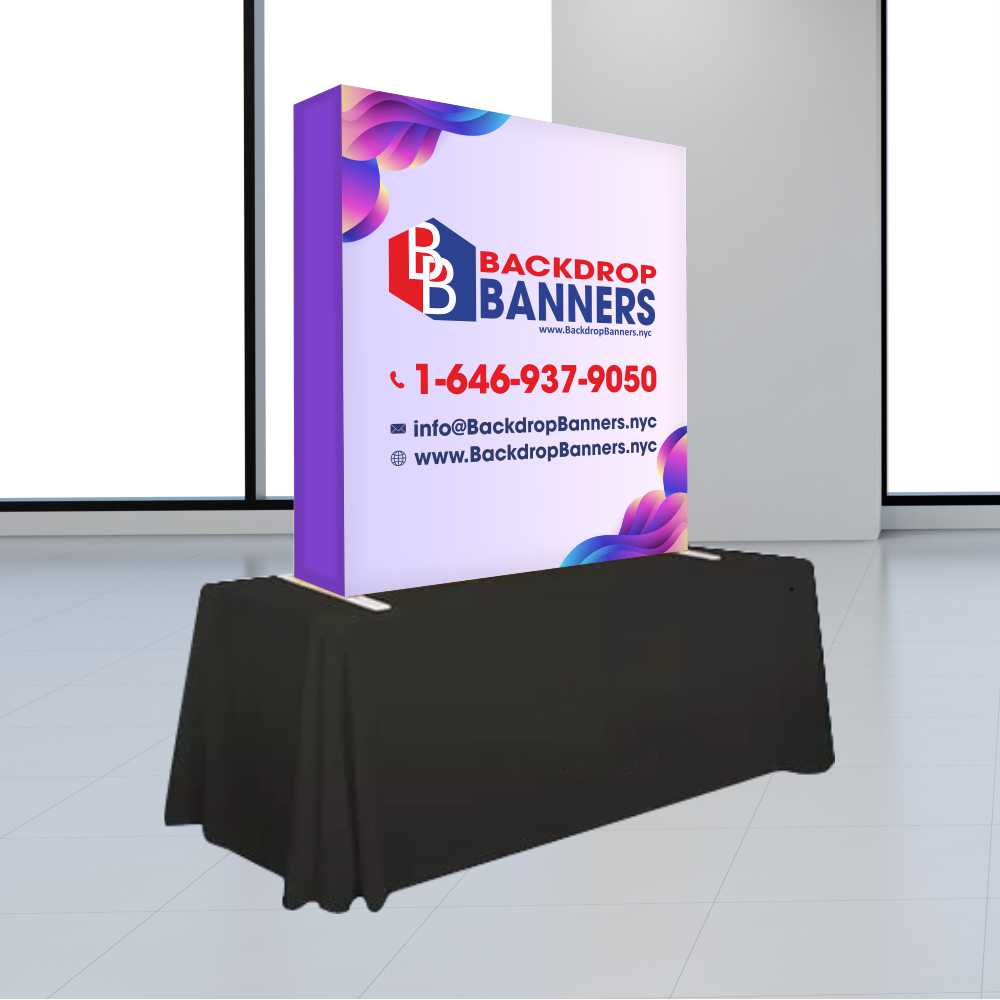 A 5 ft Tabletop SEG Display is a versatile and portable marketing tool designed to showcase your brand, products, or services in an eye-catching manner. SEG stands for “Silicone Edge Graphics,” referring to the advanced printing technology used to create seamless, high-resolution graphics for the display.