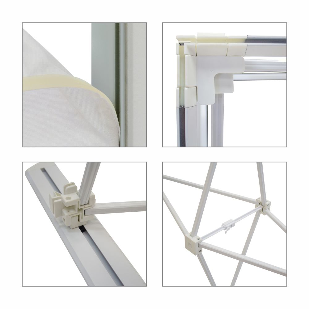 Tool-Free Assembly: Setting up the display is a breeze, as it requires no special tools. The frame effortlessly snaps together, and the silicone edge graphics are easily inserted into the frame, providing a hassle-free experience.